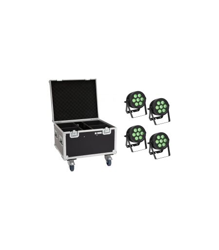 EuroLite Set 4x LED IP PAR 7x9W SCL Spot + Case with wheels TILBUD NU