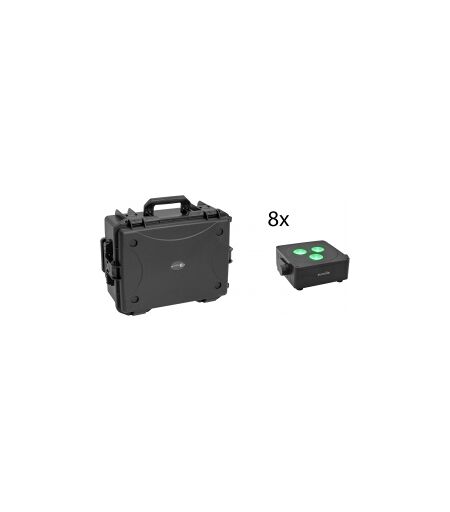 EuroLite Set 8x AKKU IP Flat Light 3 bk + Plastic case with trolley TILBUD NU