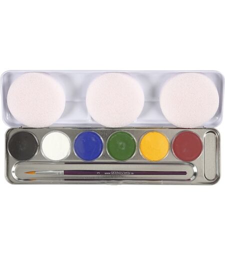 Ansigtsmaling i høj og god kvalitetEulenspiegel ansigtsmaling og teatermaling er vandsminke i høj kvalitet som kan bruges både i ansigtet og på resten af kroppen. Ansigtsmalingen fås i mange forskellige og blandbare farver der f.eks. kan piftes op med Eulenspiegel glittergel – så du kan slippe fantasien løs og lave de flotteste og mest iøjefaldende udsmykninger af ansigt og krop. Ansigtsmalingen opblødes med lidt vand og påføres huden med en pensel eller en svamp. Farverne kan nemt blandes indbyrdes til nye og spændene farver og nuancer og alle farver kan nemt vaskes af igen med vand og sæbe.Eulenspiegel teatersminke er desuden A-mærket, hvilket betyder at produkterne er fri for problematiske stoffer og samtidig overholder alle gældende sikkerheds- og sundhedskrav på området, så de er velegnede og sikre at bruge for børn såvel som voksne.Farve: AssorteretIndhold: 6 ansigtsfarver, 1 stk. pensel, 3 stk. svampe A-mærket ...