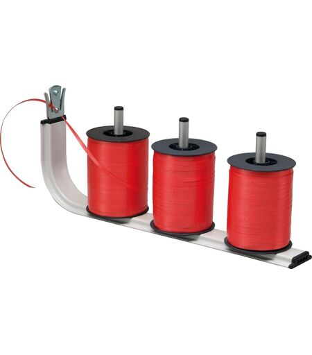 Tilbygning til indpakningsstativer – 3 ruller gavebånd Dette gavebåndsstativ kan monteres på alle stativer til gavepapir. Alt efter hvordan stativet sidder, monteres gavebåndsstativet enten oven på, eller på siden af, indpakningspapirstativet. Dermed opnås der mulighed for at skabe en praktisk indpakningsstation i højden eller bredden. Det sparer plads og er en effektiv løsning i alle arbejdsmiljøer hvor der pakkes meget ind - fra butikker til firmaer. Gavebåndsstativet har en smart afskærer på siden, som gavebåndet trækkes gennem - idet man trækker ned, klippes et stykke gavebånd af rullen. Det er effektivt og brugervenligt, ikke mindst fordi afskærerfunktionen sidder godt beskyttet, så man ikke skærer sig på den. Plads til 3 ruller gavebånd Passer til alle vores stativer til gavepapir Passer til gavebåndsruller på max. 11 cm i diameter Format (B x D x H): 6,2 x 41,6 x 17,3 cm Stativets vægt: 1,6 kg Farve: Lys grå (RAL 7035) Materiale: Stål ...
