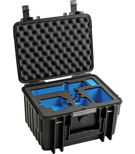 Casehuset til outdoor.case Type 2000 er lavet af slagfast og varmebestandig polypropylen (PP). Kassens udformning er tilpasset de mange varierende ydre påvirkninger i uderummet. En afbalanceringsventil sikrer et stabilt tryk inde under flyrejser for at beskytte følsomt udstyr bedst muligt. Takket være gummipakningen lukker outdoor.case helt tæt og beskytter indholdet mod fugt og støv (IP65). Takket være den præfabrikerede skumindsats giver etuiet plads nok til en GoPro Hero 9 og tilbehør såsom dobbelt batterioplader, op til 3 batterier, flydende håndtag, op til 7 microSD-kort, beslag og kabler. Et universelt rum (92 x 62 x 57 mm) tillader transport af andet tilbehør. Derudover giver case-løsningen mulighed for at oplade to batterier direkte i etuiet. Et stort universalrum (218 x 139 x 59 mm) i det andet lag muliggør sikker transport af andet udstyr, såsom ekstra beslag eller et lille stativ. ...