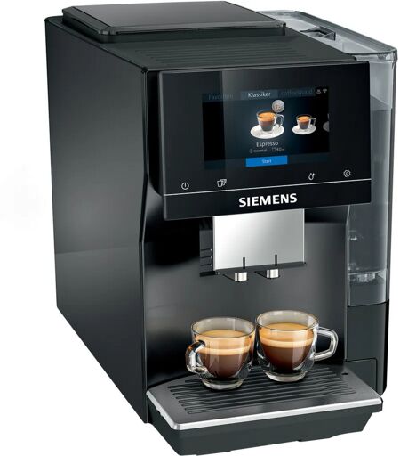 Det har aldrig været så nemt at skræddersy din kaffe til din personlige smag og præferencer med den fuldautomatiske maskine fra Siemens TP713D09 EQ.700 Classic. Den intuitive betjening af iSelect-displayet og dens Touch & Slide-funktion sikrer, at du nemt kan stryge gennem menuen på din fuldautomatiske kaffemaskine. Tag din kaffeoplevelse til det næste niveau med klassens bedste 5" iSelect Full-Touch Display. Kan du lide at nyde forskellige kaffespecialiteter? Siemens coffeeWorld bringer den særlige smag af internationale kaffespecialiteter direkte hjem til dig. Koldbryg – det er kaffe og alligevel helt anderledes. Forskellen ligger i temperaturen, fordi varmt vand ikke bruges i præparatet. Denne specielle brygningsproces forvandler din valgte ristning til en forfriskende smagsoplevelse, der specifikt fremhæver de frugtagtige noter i din kaffe. For et særligt kick af friskhed anbefaler vi at nyde den færdige kolde bryg med et par isterninger. Med funktionen Favoritter kan du gemme individuelle præferencer for kaffe- og mælkespecialiteter og oprette op til 5 favoritindstillinger. Du skal blot vælge og gemme den ønskede kaffestyrke, kopstørrelse, aromaprofil eller mælkemængde. Få adgang til dine personlige indstillinger når som helst med et tryk på en knap. Med aromaSelect kan du tilpasse kaffesmagen til dine personlige præferencer. Vælg mellem tre forskellige aromaindstillinger: mild, afbalanceret eller karakteristisk. ...