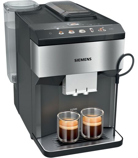 Siemens TP516DX3 EQ.500 classic er en fuldautomatisk kaffemaskine, der sikrer en alsidig vellykket kaffeoplevelse. sensoFlow-systemet sikrer altid en ideel og konstant bryggetemperatur. Det innovative TFT-farvedisplay passer ikke kun harmonisk ind i den fuldautomatiske kaffemaskines visionære design, det er også særligt praktisk at betjene. Med oneTouch-funktionen serverer EQ.500 integral den perfekte kaffeoplevelse nemt og bekvemt med et tryk på en knap. Med den let tilgængelige servicedør foran på enheden er nem vedligeholdelse og hurtig rengøring mulig. Uanset om det er en stor, fedtfattig latte macchiato, en mild cappuccino eller en ekstra stærk espresso: i dag mere end nogensinde er kaffenydelse et udtryk for ens egen personlighed og individuelle livsstil. Med det unikke iAroma-system tilbyder Siemens fuldautomatiske kaffemaskiner altid den bedste drikkevarekvalitet. Samspillet mellem en holdbar keramisk kværn, en intelligent øjeblikkelig vandvarmer, en vandpumpe og en højteknologisk bryggeenhed skaber teknisk perfektion fra bønne til kop. ...