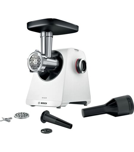 MultiPower MFWS420W kødhakkeren fra Bosch er udviklet til maksimal brugervenlighed. Den unikke, intuitive kontrolknap giver mulighed for ubesværet hastigheds- og retningsjustering. Takket være den kraftige 500 watt motor og en blokeringseffekt på 1.900 watt behandles ingredienserne jævnt og hurtigt. MultiPower kødhakkeren er velegnet til at hakke rå eller kogte fødevarer, såsom kød, fisk og grøntsager. Med en ydelse på 2,5 kg kød i minuttet mestrer den endnu større udfordringer. Den omvendte funktion hjælper med at fjerne mad, der har sat sig fast. Det betyder, at kødhakkeren er klar til brug igen inden for meget kort tid. Planetgearkassen sikrer styrke, stabilitet og høj ydeevne, selv under hård brug. MultiPower-kødhakkeren arbejder aldrig på grænsen og sikrer jævn forarbejdning. Alt tilbehør, knive, stødere og skiver tåler opvaskemaskine. Kammeret og sneglen kan simpelthen skylles under rindende vand. ...