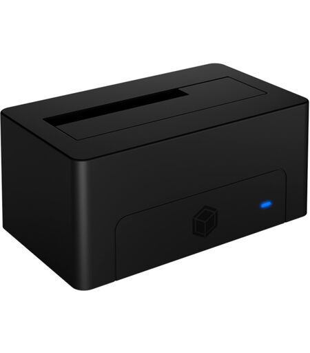 Åbningen på ICY BOX IB-1121-U3 rummer hurtigt og nemt en 2,5'''' eller 3,5'''' SATA I/II/III SSD eller HDD og kan bruges med det samme som et eksternt lagringsmedium. Isætning og gentilslutning af harddiske kræver ingen værktøjer. Hurtig dataoverførsel fra computeren til en harddisk eller omvendt er mulig med op til 5 Gbit/s via USB 3.2 Gen 1-grænsefladen. DockingStation er tilsluttet værtscomputeren via et USB Type-A-stik. Takket være Plug & Play behøver du ikke installere en driver. Med sit matsorte design passer enheden også perfekt ind i arbejdsmiljøet. ...