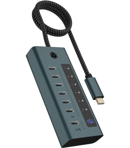 Hubben udvider en USB-C-port på værten til 7 USB Type-C 3.2 Gen 2-porte, hvilket giver brugeren en dataoverførselshastighed på op til 10 Gbps. Derudover tilbyder en af portene en opladningsfunktion med op til 20 watt til en tilsluttet enhed. Den medfølgende strømforsyning med 24 watt er ansvarlig for en pålidelig strømforsyning. Dette gør det muligt at bruge alle 4 porte, inklusive opladningsfunktionen, på samme tid. ...