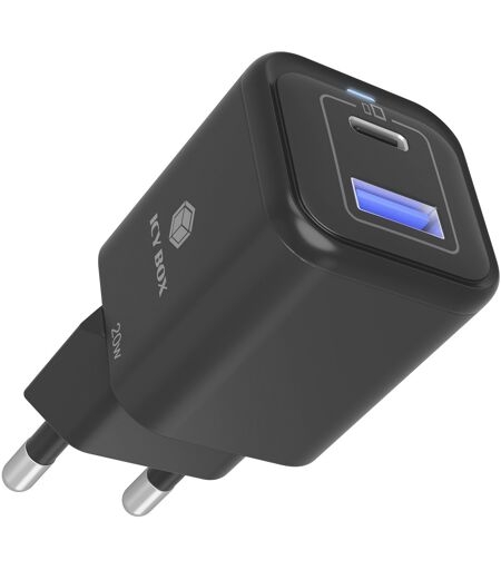 2-ports plug-in opladeren IB-PS1020-PD fra ICY BOX har to opladningsporte. USB-C-porten med op til 20 watt strømforsyning og USB-A med op til 18 watt QuickCharge 3.0 kan bruges til at oplade små bærbare computere, smartphones, tablets, Bluetooth-tilbehør og anden digital elektronik. Opladeren har et smart chipsæt, der sikrer sikker drift når som helst og hvor som helst. Det giver beskyttelse mod overspænding, overophedning og kortslutning. Med op til 38 watt samlet effekt tilbyder IB-PS1020-PD-opladeren nok strøm til at oplade to enheder på samme tid. Det intelligente chipsæt registrerer automatisk den nødvendige opladningstilstand og forhandler altid det ideelle strømbehov med den mobile enhed. ...