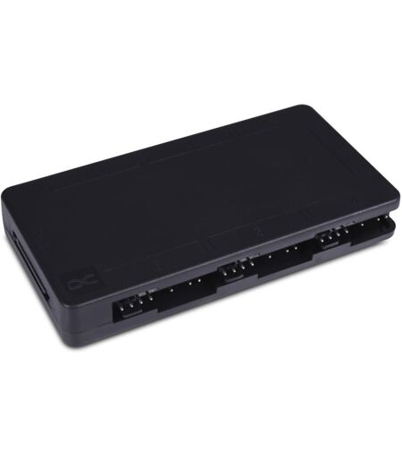 Alphacool Core 6x 4-benet PWM/DRGB-splitter har seks 3-polede kanaler til styring af digitalt adresserbare RGB-elementer samt seks 4-polede kanaler til styring af blæsere via PWM. Distributøren er forbundet via aRGB- og PWM-bundkortkabler (inkluderet) via en intern header på bundkortet. Maksimalt 6 aRGB-belyste ventilatorer med et samlet strømforbrug på 22,5W (4,5A) kan tilsluttes controlleren og dermed forsynes tilstrækkeligt med strøm. Strøm leveres via SATA-kablet i pc''ens strømforsyning. ...