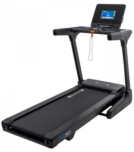 Elegant løbebånd med touchscreen, intelligent styring, app-kompatibilitet, førsteklasses udstyr Effektiv støddæmpning - 8 elastomerdæmpere og en tyk løbemåtte Smart styring – Hastighed og stigning kan justeres flere steder:Direkte på touchscreen-konsollenPå 5 hurtigknapperPå Jog-Wheel - kan... ...