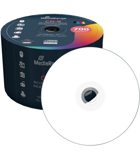 MediaRange CD-R-lagringsmedier er velegnede til hurtig og effektiv arkivering af data. Takket være den fremragende optagestabilitet kan data sikkerhedskopieres på få minutter med skrivehastigheder på op til 52x. Fremragende kompatibilitet med brændere og afspilningsenheder sikrer, at billeder, dokumenter, sange, videoer og sikkerhedskopier kan tilgås når som helst og hvor som helst. Den fuldt printbare overflade er velegnet til udskrivning med alle inkjetprintere med cd-udskrivningsfunktion. ...