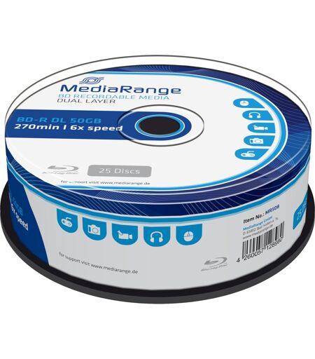 MediaRange MR508 blank Blu-ray disk BD-R DL 50 GB 25 stk, Blu-ray-diske
