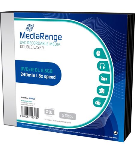 MediaRange MR465 tom DVD 8,5 GB DVD+R DL 5 stk, DVD tomme medier