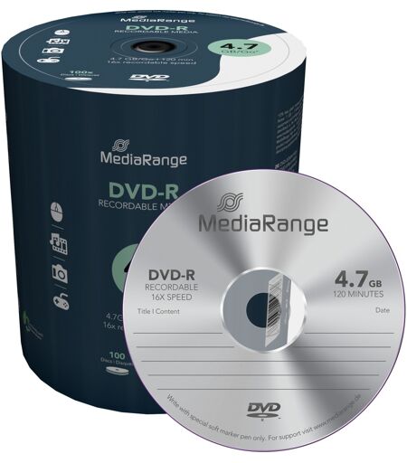 MediaRange MR442 tom DVD 4,7 GB DVD-R 100 stk, DVD tomme medier