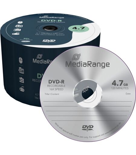 MediaRange DVD-R-lagermedier er velegnede til hurtig og effektiv arkivering af data. På grund af den fremragende optagestabilitet kan data sikkerhedskopieres på kun 4 minutter med skrivehastigheder på op til 16x. Fremragende kompatibilitet med brændere og afspilningsenheder sikrer, at billeder, dokumenter, sange, videoer og sikkerhedskopier kan tilgås når som helst og hvor som helst. Den ridsefaste overflade beskytter desuden dataene mod ydre påvirkninger i hverdagen. ...