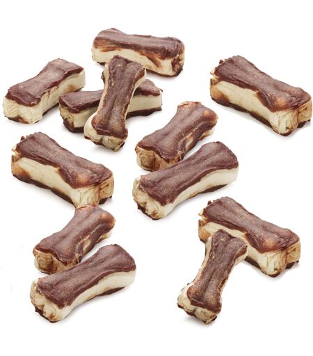 Det lækre tyggeben fra Lukullus i forskellige varianter er en velsmagende hundebelønning. De kan hjælpe med at pleje tandkødet og tænderne og sikre langvarig beskæftigelse. Tyggebenene er rene naturprodukter og indeholder hverken farvestoffer eller konserveringsmidler. De består af hovedingredienserne af lufttørret oksehud og velsmagende kød eller fisk arrangeret i en slags sandwich: en lækker oksekødsknogle toppet med lækkert kød eller fisk.En ensartet høj kvalitet er garanteret gennem konstant kontrol og resultater fra brugen af ingredienser af høj kvalitet. I denne størrelse er Lukullus tyggeknoglerne særligt velegnede til små hunde eller til korte perioder med aktivitet til større hunde. Tyggebenene fås i forskellige varianter. Her er et tyggeben til enhver smag:KyllingAndLaksLamOkseI øvrigt: Tygge er en sund aktivitet for enhver hund. Derudover understøttes mund- og tandhygiejnen på en helt naturlig måde, og tænderne trænes. Disse tyggestykker er også særligt lave i fedt (mindre end 4 % fedt) og er også meget populære hos kræsne hunde takket være det velsmagende kødfyld.Din hund vil ikke kunne modstå denne lækre snack!Alle fordele i overblik:Naturlig tyggesnackMeget velsmagende pga. af førsteklasses kød eller fiskFor at understøtte tandplejenFedtfattig (mindre end 4%) og glutenfriUden farvestoffer og konserveringsmidlerLukullus stoler på naturens kræfter. Er størrelsen ikke helt optimal til din hund? Så prøv tyggebenene i størrelse 10 cm eller 15 cm:Lukullus lækkert tyggeben 10 cmLukullus lækkert tyggeben 15 cmOBS: Posen indeholder en "Oxygen Absorber", som hjælper med at holde produktet friskt. Må ikke spises! ...