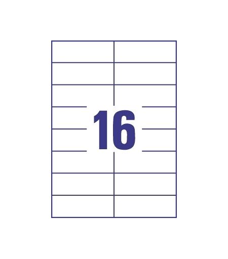 Budget Multi etiket Europe100 Universaletiketter i god kvalitet, som er kendetegnet ved udskrivning uden print- og papirstop, god klæbeevne og tydelige prints. Arkene har samtidig fremstillet med en sikkerhedskant, der forhindrer eventuel overskudslim at flyde ud på printerens tromle. De er velegnet og anbefalet til brug på kuverter og pakker til forsendelse, papir, ringbind, metaloverflader som enten er ubehandlet eller lakeret og plastiklommer i polypropylen og polyætylen. Der er 100 ark i ELA013 etiketpakken, hvor etiket måler 70 x 42,3 mm og du får i alt 2100 etiketter. Etiketterne kan printes i alle gængse s/h laser- og farvelaserprintere, inkjetprintere og kopimaskiner. Du finder skabeloner til design og print på www.europe100.eu Egenskaber Etiketstørrelse: 105 mm x 37 mm 16 etiketter pr. ark Pakke á 100 ark ...