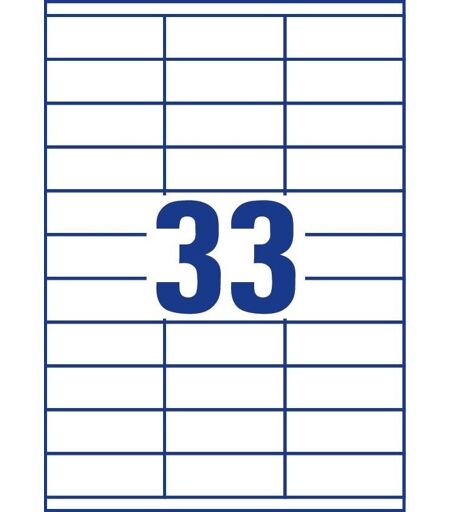 Budget Multi etiket Europe100 Universaletiketter i god kvalitet, som er kendetegnet ved udskrivning uden print- og papirstop, god klæbeevne og tydelige prints. Arkene har samtidig fremstillet med en sikkerhedskant, der forhindrer eventuel overskudslim at flyde ud på printerens tromle. De er velegnet og anbefalet til brug på kuverter og pakker til forsendelse, papir, ringbind, metaloverflader som enten er ubehandlet eller lakeret og plastiklommer i polypropylen og polyætylen. Der er 100 ark i ELA009 etiketpakken, hvor etiketten måler 70 x 25,4 mm og du får i alt 3300 etiketter. Etiketterne kan printes i alle gængse s/h laser- og farvelaserprintere, inkjetprintere og kopimaskiner. Du finder skabeloner til design og print på www.europe100.eu Egenskaber Etiketstørrelse: 70 mm x 25,4 mm 33 etiketter pr. ark Pakke á 100 ark ...