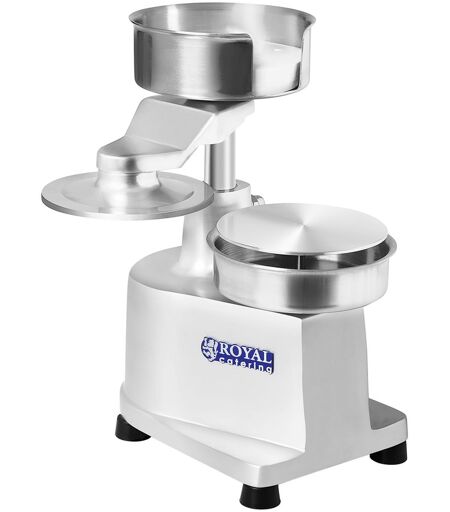 Burgerpresser RCHM-130 fra Royal Catering er udviklet til brug i professionelle køkkener og fås i to praktiske størrelser. Burgerskålen og mellemlægspapirholderen er fabrikeret i robust rustfrit stål af høj kvalitet. Kabinettet er fremstillet i anodiseret aluminium. Maskinens gennemtænkte design og professionelle udføring gør den yderst robust selv ved intensiv brug. Alle maskinens dele er lette at komme til at rengøre med almindelige rengøringsmidler. Maskinen er pladsbesparende og kan takket være de skridsikre gummifødder placeres på de fleste overflader. Maskinen er nem at betjene og producerer burgere med en diameter på 13 cm. Håndtaget er designet så det kræver et minimum af kraftanstrengelse. ...