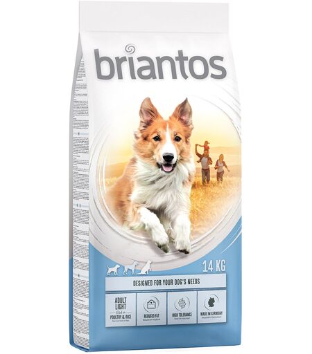Briantos er et velafbalanceret og letfordøjelig kvalitetstørfoder, som er udviklet af erfarne ernæringseksperter i henhold til nyeste forskning, og foderet indeholder alle nødvendige vitaminer og næringsstoffer. Dermed er vejen banet for et langt og aktivt liv. Briantos fremstilles i Tyskland og er udelukkende med omhyggeligt udvalgte råvarer. De essentielle fedtsyrer i foderet understøtter en sund hud og pels. Herudover udmærker Briantos sig ved at være ekstra letfordøjeligt og velsmagende. Lige nu! Køb 12/14 kg Briantos hundetørfoder og få dem til gigantisk SÆRPRIS!Du kan vælge mellem følgende varianter og læse mere under nedenstående links: Briantos Adult And Kartroffel - kornfri: Kornfrit tørt hundefoder - rig på and, med kartofler og søde kartofler. Særligt velsmagende med bløde kroketter, skånsom produktion = optimal fordøjelighedBriantos Adult Laks Kartoffel - kornfri: Kornfri opskrift og semi-moist kroketter; Velsmagende laks med kartofler og søde kartofler; skånsom produktion i et tysk familiefirmaBriantos Junior Kylling Kartoffel - kornfri: Kornfrit tørfoder til voksende hunde - rig på kylling med kartofler og søde kartofler. Med grønlæbet musling og værdifulde omega-3 6 fedtsyrerBriantos Senior Kalkun Kartoffel - kornfri: Kornfrit tørfoder til ældre hunde - med kalkun. Lavet i TysklandBriantos Adult Kylling Ris: Velafbalanceret hundefoder i topkvalitet, fremstillet i Tyskland, letfordøjeligt kyllingekød og ris, til udvoksede hunde med et normalt aktivitetsniveau, ekstra velsmagende og fyldt med kødBriantos Adult Lam Ris: Tørfoder i topkvalitet til alle udvoksede hunde med et normalt aktivitetsniveau, letfordøjeligt lammekød og ris, indeholder livsvigtige vitaminerBriantos Adult Laks Ris: Delikat laks i godt selskab med letfordøjelige kvalitetsris, velegnet til alle udvoksede hunde med et normalt aktivitetsniveau, med essentielle omega-3- og omega-6-fedtsyrer for en skinnende pelsBriantos Adult Maxi Kylling Ris: Tørfoder til hunde af store racer, ekstra store kroketter, får hunden til at tygge intensivt på foderet, med kylling og letfordøjeligt ris, med newzealandsk grønskalsmuslingBriantos Adult Active Kylling Ris: Premiumtørfoder til udvoksede, aktive hunde med et forhøjet energibehov, med et højt indhold af letfordøjeligt kyllingekød og ris, understøtter høj ydeevne og udholdenhedBriantos Adult Light: Kvalitetsfoder til hunde med lavt aktivitetsniveau tendens til overvægt eller ældre hunde, optimal ernæringsprofil med specialtilpasset fedtindhold, letfordøjeligt og mættende, med lækker kyllingBriantos Adult Sensitive Lam Ris: tørfoder med lam ris, til ernæringssensible hunde med et normalt aktivitetsniveau, ekstra skånsomt for fordøjelsenBriantos Junior: Velafbalanceret og innovativt tørfoder til hvalpe og unghunde i vækstfasen, ideelt tilpasset voksende hundes ernæringsbehov, optimal udvikling og en skinnende pelspragtDette tilbud gælder kun for artikelnummer: 1035150. ...