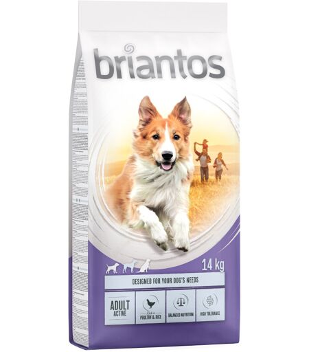 Briantos er et velafbalanceret og letfordøjelig kvalitetstørfoder, som er udviklet af erfarne ernæringseksperter i henhold til nyeste forskning, og foderet indeholder alle nødvendige vitaminer og næringsstoffer. Dermed er vejen banet for et langt og aktivt liv. Briantos fremstilles i Tyskland og er udelukkende med omhyggeligt udvalgte råvarer. De essentielle fedtsyrer i foderet understøtter en sund hud og pels. Herudover udmærker Briantos sig ved at være ekstra letfordøjeligt og velsmagende. Lige nu! Køb 12/14 kg Briantos hundetørfoder og få dem til gigantisk SÆRPRIS!Du kan vælge mellem følgende varianter og læse mere under nedenstående links: Briantos Adult And Kartroffel - kornfri: Kornfrit tørt hundefoder - rig på and, med kartofler og søde kartofler. Særligt velsmagende med bløde kroketter, skånsom produktion = optimal fordøjelighedBriantos Adult Laks Kartoffel - kornfri: Kornfri opskrift og semi-moist kroketter; Velsmagende laks med kartofler og søde kartofler; skånsom produktion i et tysk familiefirmaBriantos Junior Kylling Kartoffel - kornfri: Kornfrit tørfoder til voksende hunde - rig på kylling med kartofler og søde kartofler. Med grønlæbet musling og værdifulde omega-3 6 fedtsyrerBriantos Senior Kalkun Kartoffel - kornfri: Kornfrit tørfoder til ældre hunde - med kalkun. Lavet i TysklandBriantos Adult Kylling Ris: Velafbalanceret hundefoder i topkvalitet, fremstillet i Tyskland, letfordøjeligt kyllingekød og ris, til udvoksede hunde med et normalt aktivitetsniveau, ekstra velsmagende og fyldt med kødBriantos Adult Lam Ris: Tørfoder i topkvalitet til alle udvoksede hunde med et normalt aktivitetsniveau, letfordøjeligt lammekød og ris, indeholder livsvigtige vitaminerBriantos Adult Laks Ris: Delikat laks i godt selskab med letfordøjelige kvalitetsris, velegnet til alle udvoksede hunde med et normalt aktivitetsniveau, med essentielle omega-3- og omega-6-fedtsyrer for en skinnende pelsBriantos Adult Maxi Kylling Ris: Tørfoder til hunde af store racer, ekstra store kroketter, får hunden til at tygge intensivt på foderet, med kylling og letfordøjeligt ris, med newzealandsk grønskalsmuslingBriantos Adult Active Kylling Ris: Premiumtørfoder til udvoksede, aktive hunde med et forhøjet energibehov, med et højt indhold af letfordøjeligt kyllingekød og ris, understøtter høj ydeevne og udholdenhedBriantos Adult Light: Kvalitetsfoder til hunde med lavt aktivitetsniveau tendens til overvægt eller ældre hunde, optimal ernæringsprofil med specialtilpasset fedtindhold, letfordøjeligt og mættende, med lækker kyllingBriantos Adult Sensitive Lam Ris: tørfoder med lam ris, til ernæringssensible hunde med et normalt aktivitetsniveau, ekstra skånsomt for fordøjelsenBriantos Junior: Velafbalanceret og innovativt tørfoder til hvalpe og unghunde i vækstfasen, ideelt tilpasset voksende hundes ernæringsbehov, optimal udvikling og en skinnende pelspragtDette tilbud gælder kun for artikelnummer: 1035150. ...