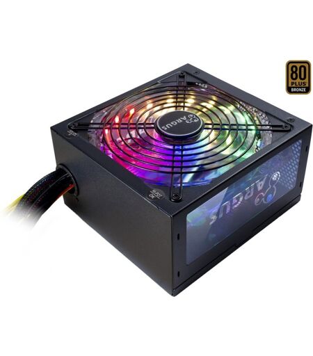 Den reviderede version II af Argus 600W RGB PSU har de imponerende lyseffekter af de 21 RGB-LED''er på den støjsvage 140 mm blæser, som kan styres enten manuelt via en knap eller via den 3-benede 5V RGB-bundkortcontroller. Sidevinduet i akrylglas med det indgraverede Argus-logo fremhæver også din computer. Certificeret med 80PLUS Bronze og udstyret med Active Power Factor Correction (PFC) og 2x PCI-E-stik, er Argus RGB-600W II det perfekte valg til gaming- eller grafikcomputere. Den holdbare sorte finish og lange og fleksible kabler fuldender det fantastiske tilbud. ...