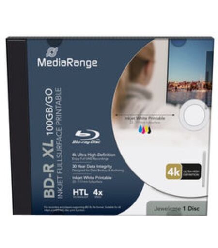 Takket være moderne Blu-ray-teknologi gør MediaRange BD-RXL-lagringsmedier det muligt at skrive mindre datahuller og dermed arkivere op til 10 gange så meget som en konventionel DVD på en Blu-ray-disk hurtigt og effektivt. På grund af den fremragende optagelsesstabilitet kan dataene sikkerhedskopieres på få minutter med skrivehastigheder på op til 4x. Dette høj-til-lave BD-R-medie er fremstillet i en høj-til-lav-proces og tilbyder kvalitet og pålidelighed, fremragende kompatibilitet med brændere og afspilningsenheder, hvilket sikrer, at du kan få adgang til dine personlige billeder, dokumenter, musik, videoer og sikkerhedskopier når som helst og hvor som helst. Sortimentet af lagringsmedier er kendetegnet ved langvarige arkiveringstider og fremragende UV-lysbestandighed. Den ridsefaste overflade beskytter også dataene mod ydre påvirkninger i hverdagen. Den printbare overflade er velegnet til udskrivning med alle inkjetprintere med cd-udskrivningsfunktion. ...