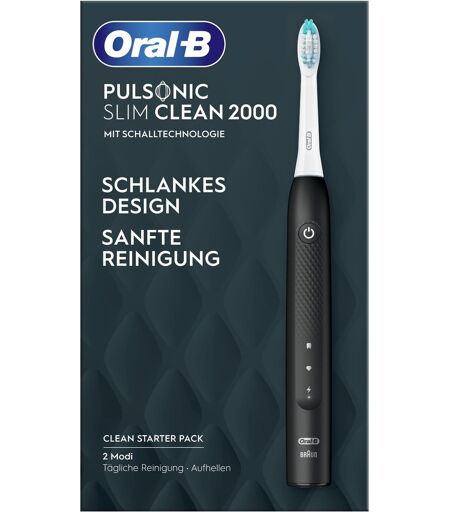 Overlegen fjernelse af plak for et strålende smil! Oral-B Pulsonic Slim Clean 2000 sonic tandbørste fjerner mere plak end en konventionel manuel tandbørste med blid lydteknologi og 39.000 børstehovedbevægelser. Det aflange børstehoved giver glat rengøring og hvidere tænder med vibrerende, afrundede børstehår. Pulsonic Slim Clean har to rengøringstrin til en grundig standardrensning eller blegning af tænderne. Den professionelle timer minder dig også om at overholde børstetiden på 2 minutter anbefalet af tandlæger. ...