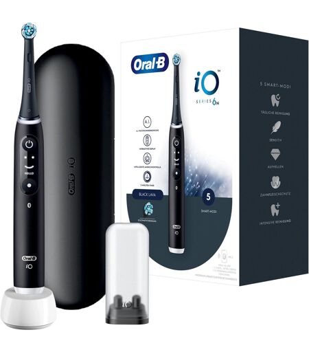 Braun Oral-B iO overgår alle forventninger til en tandbørste med en ufattelig rengøringsevne og en sensationel mundfølelse. Oral-B iO''s innovative magnetiske drivsystem leverer energi præcist til børstespidserne, som glider fra tand til tand med blide mikrovibrationer for en effektiv og behagelig børstningsoplevelse. Så du kan nyde en frisk følelse hver dag som fra tandlægen! Den intelligente trykregulering advarer om for meget tryk med rødt lys og lyser grønt, når det optimale tryk anvendes. Et interaktivt display gør det nemt at navigere gennem penslens forskellige funktioner og indstillinger. Så du kan vælge mellem forskellige rengøringstilstande og få individualiseret coaching i realtid samt en påmindelse om at skifte børstehoved. Den visuelle timer giver information om den anbefalede rengøringstid på 2 minutter. Tandbørsten hilser også brugeren om morgenen og giver et smil efter børstningsprocessen for fremragende resultater. For første gang tilbyder appen interaktiv 3D-grafik, mens Oral-B iO genkender den individuelle rengøringsteknologi takket være kunstig intelligens. Med Braun Oral-B iO kan du opleve en tandbørstningsoplevelse, der inspirerer! ...