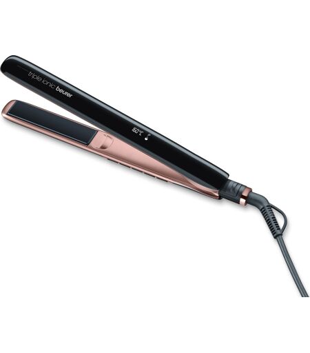 Beurer HS 80 glattejernOpnå hurtig og effektiv glatning af dit hårØnsker du at opnå et hurtigt og effektivt resultat, uden at gå på kompromis med plejen af dit hår, er dette glattejern fra Beurer, det du leder efter. Beurer HS 80 er et flot og funktionelt glattejern med en beskyttende titanium belægning og er udstyret med en trippel ion teknologi samt beskyttelsesfunktion, som giver dig en optimal beskyttelse af hårets naturlige glans og farve og efterlader det blødt og skinnende. Et praktisk LCD display vises under brug og giver dig en let og tydelig aflæsning om glattejernets temperatur, som du nemt kan justere fra 100-220°C. En automatisk sikkerhedsafbrydning, sikrer dig mod overophedning/kortslutning af apparatet samt unødig strømforbrug. Til glattejernet medfølger en varmeresistent taske og glattejernet er udstyret med en praktisk løkke til ophængning, for optimal afkølning og opbevaring af glattejernet, når dette ikke er i brug.Type: GlattejernTriple Ionic Function: 3-trins stylingTitanium belægning: Beskytter håretBeskyttelses funktion: Beskytter hårets naturlige glans og farveVarmeindstillinger: 100-220°CLCD display: Viser temperaturen under brugHukommelsesfunktion: Husker din seneste varmeindstillingAutomatisk sikkerhedsafbrydning: Ja360°C drejeled: Hindrer at ledningen slår knuderOpbevaring: Varmeresistent taske medfølgerLedningslængde: 1,8 mProduktmål: 31 x 3,2 x 3,8 cmProduktvægt: 0,4 kgEffekt: 45 wattStrøm: 220-240 V ...