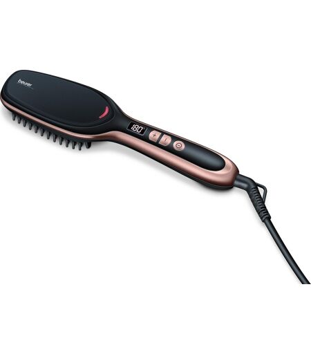 Beurer HS 60 hårbørste med ionfunktionTræt af uglet og glansløst hår?Med en HS 60 glattebørste fra Beurer får du hurtigt og nemt glat og glansfuldt hår. Med en lynhurtig opvarmningsfase – ideelt til når det skal gå hurtigt i hverdagen, og med en smart ionteknologi sørger Beurer Glattebørsten for et antistatisk look, samtidig med at den efterlader et blødt og glansfuldt hår. Børsten kan let temperaturindstilles fra 120°-200°C, så børsten kan bruges til enhver hårtype. Kvaliteten møder du allerede ved første øjekast. Med softtouch overflade, praktisk LED display som konstant viser temperaturen og keramisk belagt varmeflade, ved du, at du står med et kvalitetsprodukt i hånden. Når du er færdig med at bruge din glattebørste, kan du nemt og sikkert lade den afkøle ved at hænge den op, da HS 60 har en praktisk ophængningsstrop. Glattebørsten har automatisk sikkerhedsslukning og en 360° roterende ledning, så du undgår at bøje eller vride den.Type: Hårbørste med varme/glattefunktion360° roterende ledningAuto-slukOphængningsstropLED-displayManuel temperatur-indstilling: 120-200°C ...