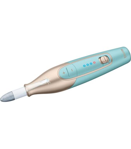 Med MP 84 manicure og pedicure enhed kan negle plejes af det indbyggede batteri uden irriterende kabler. Der er 10 vedhæftede filer lavet af holdbar safirbelægning eller poleringsfilt. Sammen med tretrins hastighedskontrol og højre/venstre rotation er professionel fod- og neglepleje mulig, som det ellers kun er tænkeligt for fodterapeuten. Derudover sikrer det integrerede LED-lys optimale lysforhold under påføring. Alle tilbehør kan nemt integreres i MP 84''s praktiske opladnings- og opbevaringsetui. ...