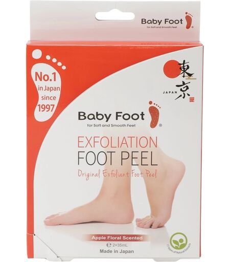 Baby Foot Exfoliation Foot Peel er et vidunder fodprodukt, som giver fantastisk bløde fødder og kan bruges af både mænd og kvinder. Denne fodmaske er udviklet til at fjerne døde hudceller, der ellers vil give problemer i fodsålen. Baby Foot Exfoliation Foot Peel er beriget med 17 naturlige ekstrakter, heriblandt frugtsyre, som er den vigtigste, da den stimulerer cellefornyelsen og tilfører ekstra fugt. Resultatet bliver bløde og flotte fødder uden revner eller sprækker. Vær opmærksom på, at produktet kan misfarve tøj og møbler. OBS! Bør ikke anvendes af diabetikere Fordele: Engangs "sokker", der giver bløde fødder Indeholder 1 par 'sokker' Indeholder naturlige ekstrakter Anvendelse: Fjern evtentuel neglelak før brug Vask og tør fødderne (har man meget tør og hård hud, anbefales et fodbad inden brug) Tag "sokkerne" på, og lad dem være på i ca 1 time, til væsken absorberer Sokkerne tages af og smides ud. Vask derefter fødderne blidt med sæbe Efter 3-7 dage vil de døde hudceller skalle af, og fødderne vil blive babybløde. ...