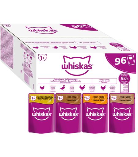 96x85g Adult Fjerkræudvalg i gelé Whiskas kattemad