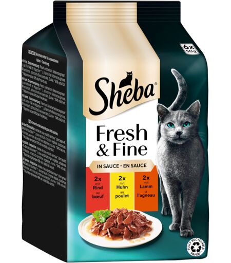 12x50g Fresh & Fine - Okse, Kylling & Lam i Sauce Sheba kattemad