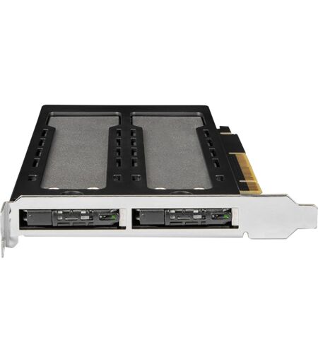 ExpressSlot Elite MB842MP-B forvandler en PCIe 8x eller 16x udvidelsesplads til et mobilt rack med to M.2 NVMe-slots, så du kan udskifte M.2 NVMe SSD''erne uden at skulle åbne computerkabinettet. Værktøjsfri M.2 NVMe SSD-installation tager mindre end fem sekunder og sparer dig for at håndtere små, nemme at miste skruer. Den specielle flade M.2-drevbås er lavet af tykt aluminium og fungerer som en køleplade til at sprede den varme, der genereres af M.2 NVMe SSD. ...