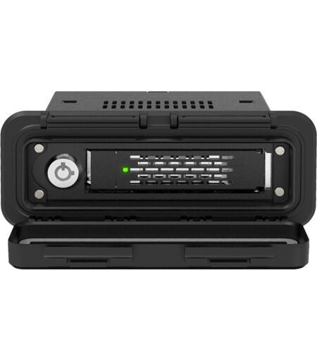 ICY DOCK ToughArmor EX MB601V4KW-B har et Tough Cover-frontpanel med IPX6-certificering, som giver fremragende beskyttelse mod støv, vandstænk og ekstreme miljøforhold. Dette robuste kabinet er designet til militær-, felt- og kantmiljøer og understøtter en 2,5" U.2/U.3 NVMe SSD (op til 15 mm i højden) og passer ind i en standard 3,5" ekstern drevplads – ideel til anvendelser, hvor robusthed, bærbarhed og pålidelighed er afgørende. Takket være sin metalkonstruktion og blæserløse design tilbyder MB601V4KW-B PCIe Gen 4.0 overførselshastigheder på op til 64 Gbps via en direkte U.2 (SFF-8639) grænseflade. Dette gør den ideel til højhastighedsarbejdsgange såsom AI-modeltræning, datalogning og industriel caching. Sikkerhed på drevniveau forstærkes af en 2-trins sikkerhedslås og EMI-jording, hvilket sikrer sikker og stabil drift i følsomme miljøer. MB601V4KW-B er udstyret med en Eagle Hook-låsemekanisme, der forhindrer utilsigtet udstødning af SSD''en og sikrer et sikkert greb under drift. For ekstra sikkerhed begrænser en 2-trins sikkerhedslås adgangen til autoriserede brugere og forhindrer fysisk tyveri eller manipulation med drevet. ...