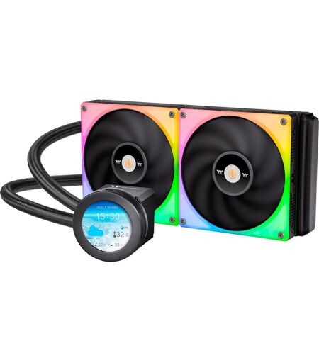 Thermaltake TOUGHLIQUID Ultra 280 RGB All-In-One Liquid Cooler er udstyret med en drejelig 2,1" LCD-skærm, der kan vise videoer, fotos eller endda det lokale vejr og tid. Denne stilfulde alt-i-en væskekøler tager pc-tilpasning til det næste niveau. De fantastiske TOUGHFAN 14 RGB-blæsere på dette produkt giver fremragende køleydelse og flere personaliseringsmuligheder. ...