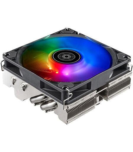 Hydrogon H90 ARGB er en CPU-køler designet til kompakte ITX-systemer. Med en samlet højde på kun 48 millimeter kan den også installeres i ekstremt flade huse - en kobberbase og fire aluminiumsvarmerør sikrer solid varmeafledning. Ventilatoren på 92 millimeter roterer med PWM-kontrol i et interval på 500 til 2600 omdrejninger i minuttet: Så støjniveauet forbliver lavt ved lav belastning, men høj kølekapacitet kan kaldes op, hvis det er nødvendigt. Derudover giver ventilatoren attraktiv, kontrollerbar ARGB-belysning. ...