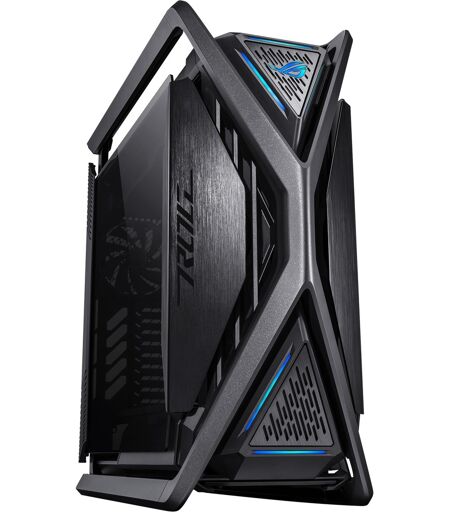 ROG Hyperion GR701 tilbyder en X-faktor i form og funktion. Med understøttelse af dobbelte 420 mm radiatorer, overlegen grafik, en fuldt integreret 2-vejs aluminiumskortbeslag, 60-watt enhedsopladning og to USB-C-porte på forsiden til kompatible ROG-bundkort er det en premium pc-sag i den eftertragtede ROG-stil. GR701 er bygget af avancerede materialer, der er tilsat yderligere behandlinger og specielle poleringsmetoder for at levere det luksuriøse udseende, som et ROG-chassis hæver over sine mange udfordrere. Et frontluftindtag giver tilstrækkelig ventilation til at opnå den helt rigtige temperaturbalance for systemet. Dette passer problemfrit ind i et dristigt look med funktioner som det karakteristiske diamantformede badge på forsiden, præget med det berømte ROG-logo og omgivet af diagonale skråstreger. Republic of Gamers er befolket af udviklere, der kræver det bedste. Hyperion GR701 tilbyder klassens bedste kølepotentiale med understøttelse af 420 mm radiatorer på toppen og forsiden af chassiset, mens fire 140 mm PWM-blæsere allerede er tilsluttet en Aura Sync ARGB-blæserhub. Mellem bundkortbakken og forsiden af chassiset er et innovativt lodret installationsområde, der kan opfylde en række krav. Under bundkortets bakkeområde er et 34 mm dybt kammer til kabelstyring og en 46 mm bred kabelstyringskanal sikret med flere ROG-mærke velcro-stropper for at holde det gennemsigtige sidepanel ryddeligt. Denne sag har også et klart kabeldæksel, der skjuler grimme kabler, samtidig med at RGB-stilen kan skinne igennem. Denne meget tilpasningsdygtige sag kan rumme grafikkort op til 460 mm lange og 130 mm tykke, både vandret og lodret. For at maksimere adgangen til interiøret har dette kabinet et hængslet tonet glassidepanel, der åbnes let og uden værktøj og kan flyttes opad og ud af vejen, hvis det er nødvendigt. For at lette systemvedligeholdelsen har dette kabinet et lille indbygget opbevaringsrum til ting som PCIe-slotbeslag, skruer og kabelbeslag. ROG Hyperion GR701 har en avanceret integreret grafikkortholder, hvis lette anodiserede aluminiumskomponenter kan bruges lodret eller vandret for at forhindre lange grafikkort i at hænge. Det tilbyder også yderligere kompatibilitet med ROG Herculx-kortholderen. Intet ROG-chassis i dag er komplet uden en indbygget hub til styring af blæsere og ARGB-belysning. Den er prydet med et guld-ROG-logo og understøtter op til otte ARGB-komponenter og seks PWM-blæsere, så brugerne kan tilføje deres egen belysning og køling ud over belysningskortet og fire forudmonterede kabinetventilatorer. ROG Hyperions ramme er lavet af holdbare aluminiumlegeringer smedet til et karakteristisk X, der strækker sig fra midten af sagen til kanten. Den stive struktur fungerer også som et bærehåndtag, der kan bære op til 80 kg hardware. Dette kabinet har et internt ARGB-belysningspanel, der formidler ROG-identiteten til alle, der kigger ind, og det kan vises på ydersiden, hvis du vil gøre plads til fans eller SSD''er på dette tidspunkt.... ...
