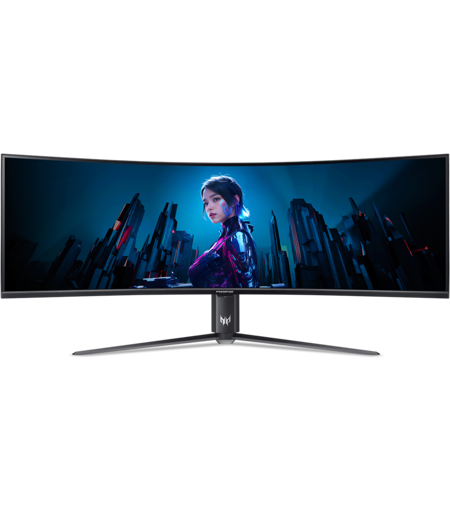 Skærm: 145 cm (57,1") DUHD (7680x2160) 120Hz, Curved 1000R, Panelteknologi: Lodret justering (VA) (178°x178°), FreeSync Premium, VESA DisplayHDR 1000, Inputs: Displayport, HDMI, USB type C, Reaktionstid: 1 ms, Lysstyrke: 400 cd/m², HDR1000 mode: peak 1000 cd/m², ...