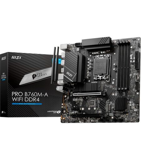 MSI PRO B760M-A WIFI DDR4 bundkort er baseret på Intel B760-chipsættet og understøtter Intel-processorer®® til socket 1700 i 13. og 12. generation. Den har fire DDR4 DIMM-slots i dual-channel-drift til op til 128 GB hukommelse. Andre funktioner i MSI PRO B760M-A WIFI DDR4 inkluderer en PCIe 4.0 x16 slot, en PCIe 3.0 x16 slot og en PCIe 3.0 x1 slot. Derudover har MSI PRO B760M-A WIFI DDR4 8-kanals lyd, en 2.5 Gigabit LAN-grænseflade, Wi-Fi6E, Bluetooth, fire SATA3-porte, to M.2-porte og en række USB-grænseflader. ...