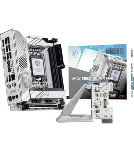 MSI MPG Z890I EDGE TI WIFI er baseret på Intel® Z890-chipsættet og understøtter Intel-processorer® til socket 1851. Den har to DDR5-slots til op til 128 GB RAM. MSI MPG Z890I EDGE TI WIFI har også en PCIe 5.0 x16 slot. Derudover har MSI MPG Z890I EDGE TI WIFI 8-kanals lyd, en 5 Gigabit LAN-grænseflade, WiFi 7, Bluetooth 5.4, to SATA3-porte, fire M.2-porte og en række USB-porte. ...