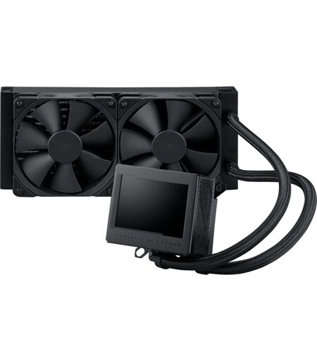 Med ASUS Ryujin III forbliver selv avancerede gaming-pc''er stille og kølige. Kobber-CPU-blokken huser en stor 3.5-tommer LCD-skærm, der kan vise live statistik, animerede GIF''er eller dit eget kunstværk. Nedenunder giver en ny 8. generations Asetek-pumpe køling til de nyeste processorer fra Intel og AMD, mens en indbygget Axial-Tech-blæser hjælper med at kontrollere bundkortets VRM-temperaturer. Væsken ledes gennem generøst flettede slanger og afkøles af en køler med større kapacitet og to lydløse 120 mm Noctua-ventilatorer. ...