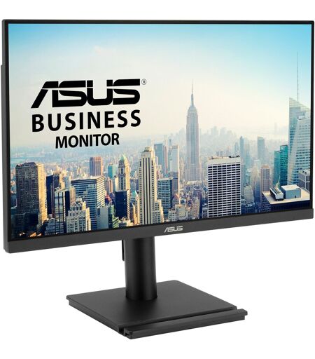 ASUS VA249QGS Eye-Care Business-skærmen har et 60,5 cm (23,8") IPS-panel, der giver strålende farver, rig kontrast og brede betragtningsvinkler. Med sin FullHD-opløsning (1.920 x 1.080 pixels) er mange detaljer synlige, uanset om det er på arbejdet, i film eller i tekstfiler. ASUS VA249QGS overbeviser med en hurtig opdateringshastighed på 120 Hz, en lav responstid på kun 1 ms (MPRT) og understøttelse af Adaptive-Sync-teknologi. For større komfort modvirker Flicker-Free LED og Low Blue Light-teknologien aktivt træthed og skader på øjnene. Den samlede pakke afrundes af 4-watt stereohøjttalere og et justerbart stativ. ...