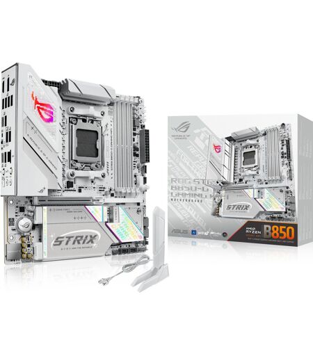 ASUS ROG STRIX B850-G GAMING WIFI er baseret på AMD B850-chipsættet og understøtter AMD-processorer til socket AM5. Den har fire DDR5-slots til op til 256 GB RAM. ASUS ROG STRIX B850-G GAMING WIFI har også en PCIe 5.0 x16-slot og en PCIe 4.0 x16-slot. Derudover har ASUS ROG STRIX B850-G GAMING WIFI 8-kanals lyd, en 2.5 Gigabit LAN-grænseflade, WiFi 7, Bluetooth 5.4, to SATA3-porte, fire M.2-porte og en række USB-porte. ...
