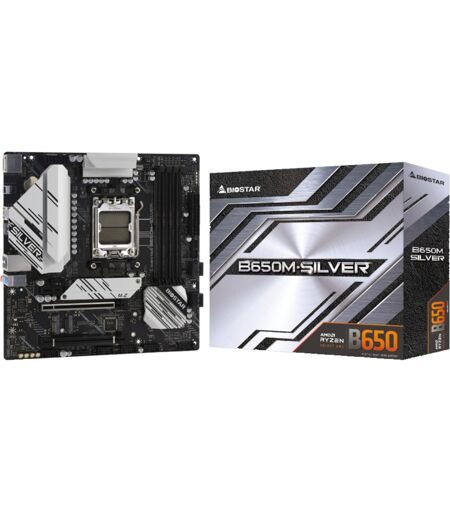Biostar B650M-SILVER er baseret på AMD B650-chipsættet og understøtter AMD-processorer til socket AM5. Den har fire DDR5-slots til op til 128 GB hukommelse. Biostar B650M-SILVER har også to PCIe 4.0 x16 slots og en PCIe 3.0 x1 slot. Derudover har Biostar B650M-SILVER 8-kanals lyd, en 2,5 Gigabit LAN-grænseflade, fire SATA3-porte, to M.2-porte og en række USB-grænseflader. ...