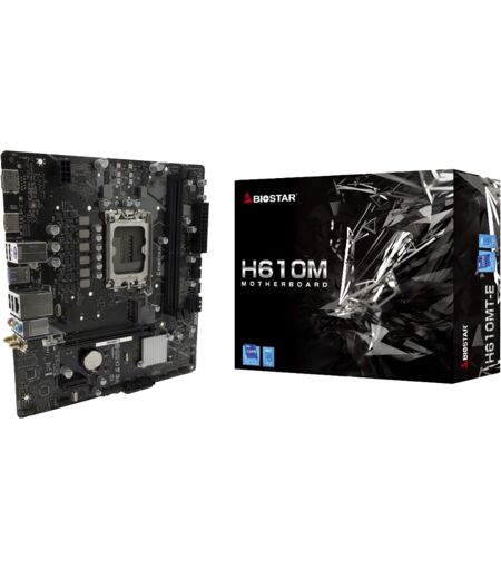 Biostar H610MT-E bundkortet er baseret på Intel® H610-chipsættet og understøtter Intel-processorer® til 12. generations socket 1700. Den har to DDR4 DIMM-slots i dual-channel-drift til op til 64 GB RAM. Andre funktioner i Biostar H610MT-E inkluderer en PCIe 4.0 x16-slot og en PCIe 3.0 x1-slot. Biostar H610MT-E har også 8-kanals lyd, et Gigabit LAN-interface, fire SATA3-porte, en M.2-port og en række USB-porte. ...
