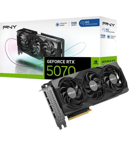 PNY GeForce RTX 5070 OC er et avanceret grafikkort drevet af NVIDIAs GeForce RTX 5070 GPU. Den kraftfulde GeForce RTX 50-grafikkortserie er baseret på NVIDIA Blackwell-arkitekturen og tilbyder nye niveauer af spilrealisme, hastighed og energieffektivitet, AI-funktioner såsom billedgenerering, multi frame-generering og realistiske VR-oplevelser. Andre funktioner inkluderer Real-Time Ray Tracing, Ray Reconstruction, NVIDIA Ansel, med omfattende værktøjer til at tage skærmbilleder i spil, samt NVIDIA G-SYNC, G-SYNC HDR, NVIDIA DLSS 4, ShadowPlay, Highlights, NVENC Gen 9, AV1 Encoder og Decoder. GPU''en installeret på PNY GeForce RTX 5070 OC har 6144 CUDA-kerner. GDDR7-hukommelsen på 12 GB har en 192-bit hukommelsescontroller. ...