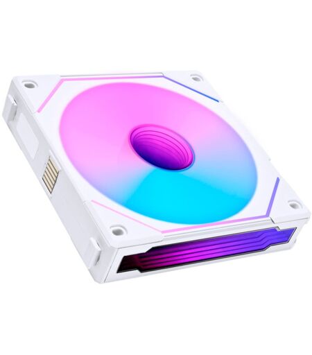 UNI FAN SL-INF af Lian Li er en kombination af den originale UNI FAN SL og AL. Der er to tynde LED-strips på begge sider af blæserbladet, og blæserrammen er omsluttet af aluminiumslister på begge sider. 2. generation af UNI FAN SL er en nyfortolkning af den sammenkoblede stil, som gør det muligt at tilslutte op til 4 blæsere i en klynge, hvilket forenkler kabelhåndteringen og forbedrer kompatibiliteten med radiatorstik. Et pin-to-pad-kontaktpunkt leder signalet og strømmen gennem blæserklyngen. Låsenøglen på hver blæser er aftagelig for at forbedre kompatibiliteten med radiatorfittings. Kabelmodulet er placeret i midten af blæseren og kan ændre retning for at undgå problemer med radiatorens indløb og udløb. Med den nye L-Connect-grænseflade kan lyseffekterne fra SL-Infinity-blæserne styres præcist. ...