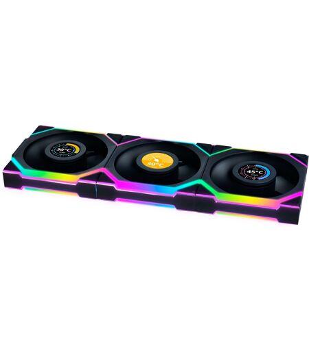 Mindre kabelrod, nemmere tilslutning og styring af ventilatorerne: Med UNI FAN SL120 LCD Wireless fra Lian Li er kabelstyring i pc''en mulig - simpelthen ved at eliminere kabler. Denne 120 mm kabinetventilator har en trådløs controller, der kan bruges til at styre lyseffekter og hastighed. Den har ARGB-lyseffekter med 40 RGB-LED''er i to zoner og forbliver støjsvag selv under belastning: Den maksimale hastighed er 1900 omdrejninger i minuttet med en maksimal lydstyrke på 31 dB. UNI FAN SL120 Wireless kombinerer stilfuld belysning med høj effektivitet og innovativ styring. Og den integrerede LCD tilbyder en anden funktion for fans af individuelle modeller: Denne skærm kan bruges til at vise dit eget indhold som billeder og videoer - hvilket giver systemet et personligt præg og gør det til et ægte blikfang! Denne version med baglæns klinger opnår også et ensartet udseende: Ventilatoren behøver ikke længere at være installeret i kabinettet med bagsiden vendt fremad for at trække luft ind i kabinettet. Sættet indeholder tre blæsere og en matchende trådløs controller til styring af hastighed og belysning. ...